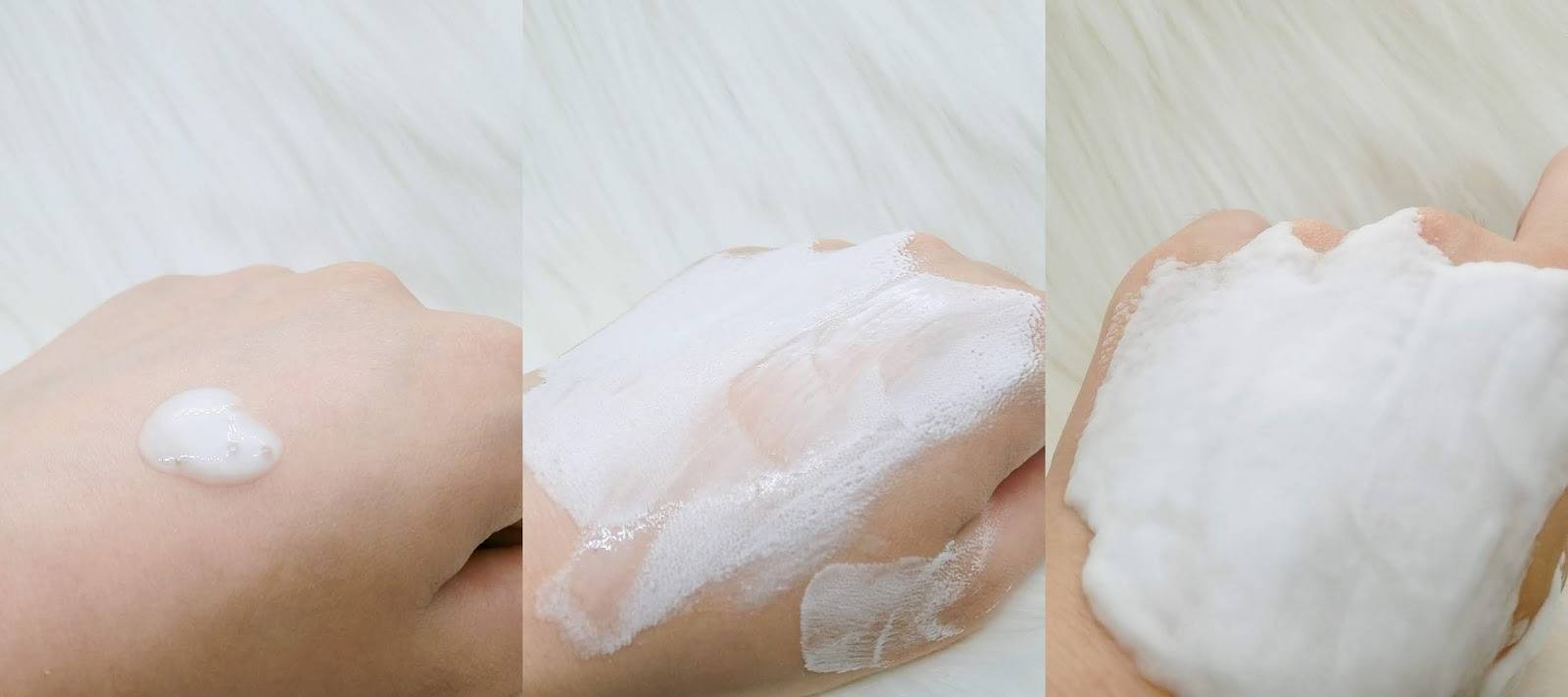 我們先使用在手上看看,剛擠出來洗面乳的質地還沒感受到甚麼特別的地方,均勻塗抹後確實在3秒鐘自動發泡,可以看到蜂湧而出的泡泡非常綿密!