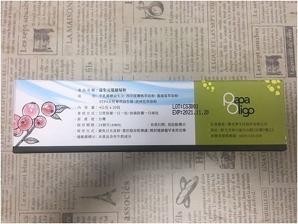 女性私密處保養非常重要,尤其台灣的天氣悶熱、潮濕, 很容易一不小心就會感染,不但會有異味及搔癢不適感, 嚴重甚至還會引發婦科疾病,所以一定要注意! 想做好日常的私密處保養,除了使用外用的產品 也可以搭配內服的保健食品來幫助私密處保養喔! 益生元蔓越莓粉擁有私密保養的3大關鍵成分: 半乳寡糖益生元+女性專利STP4益生菌+150倍濃縮蔓越莓萃取 加強專利菌功效,幫助調整體質,維持私密處良好菌相 給你雙道防護,另外還有西印度櫻桃維他命C和洛神花萃取 只要每天一包,輕輕鬆鬆幫你做好私密處保健的保養 益生元蔓越莓粉外包裝紙盒設計的十分美麗 產品標示在外盒兩側十分清楚 益生元蔓越莓粉每盒有20包,每包是4g 單一獨立包裝設計,外出攜帶跟食用都十分方便 每包獨立包裝上也都有打印上保存期限 不怕外盒丟了就不知道日期,這點十分貼心~ 可以看到包裝上開口的設計不是全開式的 因為益生元蔓越莓粉的粉末非常細緻, 這樣的設計可避免粉末倒入口時飛散 打開後可以聞到淡淡的莓果味 直接口服或加入飲品中食用都可以 日常保養一天一包,加強防護可以一天二包 吃起來酸酸甜甜的味道,十分好入口, 沒有甚麼特殊的味道,適口性很高喔! 這款papaoligo益生元蔓越莓粉 , 除了有獨家專利的半乳寡糖益生元好菌調整體質 還有女性專利STP4益生菌,幫私密處做好防護 更有全球唯一高濃縮萃取專利150倍濃縮蔓越莓萃取 有美白效果更可以降低感染風險 其他成分西印度櫻桃維他命C、洛神花萃取 幫助抗氧化促進血液循環,用天然草本力 來加強防護機制,解除私密危機! 要吃進身體裡的一定要安全!益生元蔓越莓粉有多重認證, 通過SGS農藥、重金屬、動物用藥檢驗, 生產廠更通過SGS食品安全認證 讓你安心食用更有保障! 蔓越莓因其健康價值極高,有「北美的紅寶石」的美名 蔓越莓除了能抑制細菌附著、降低泌尿道感染風險外, 富含花青素、兒茶素、維生素C等抗氧化成分, 適量食用有助維持健康! 台灣天氣潮濕悶熱,本來就較容易滋生細菌, 因此對於私密處的保養千萬不可忽視 益生元蔓越莓粉每天一包, 輕鬆幫你做好私密處保養防護,讓你美麗更散發自信!