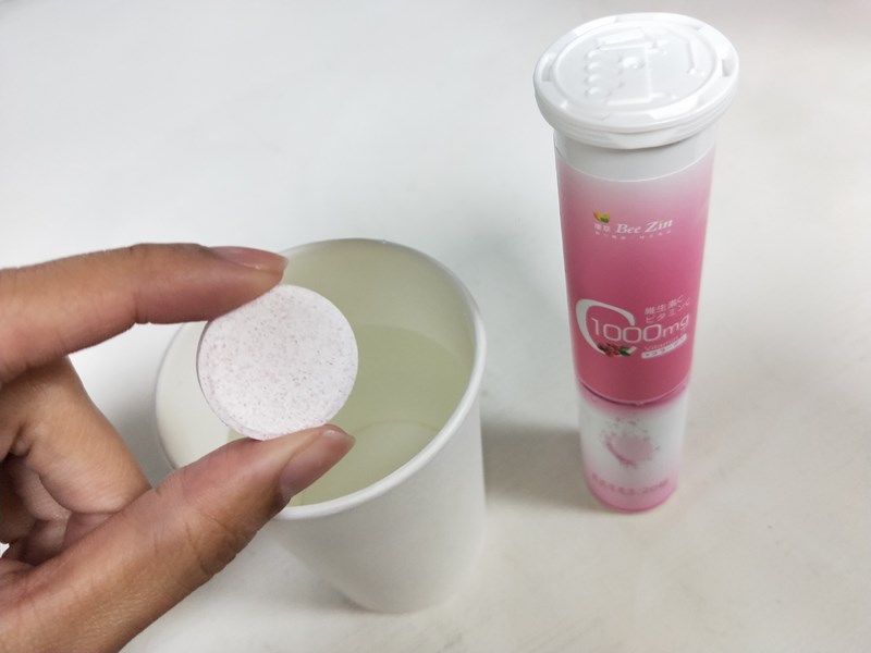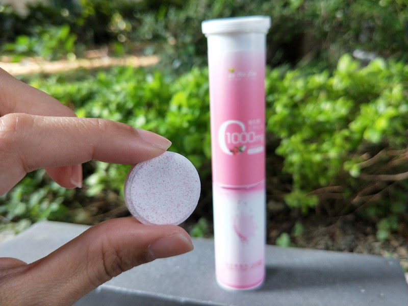 含有“維生素C1000毫克”,以及“膠原蛋白三胜肽”