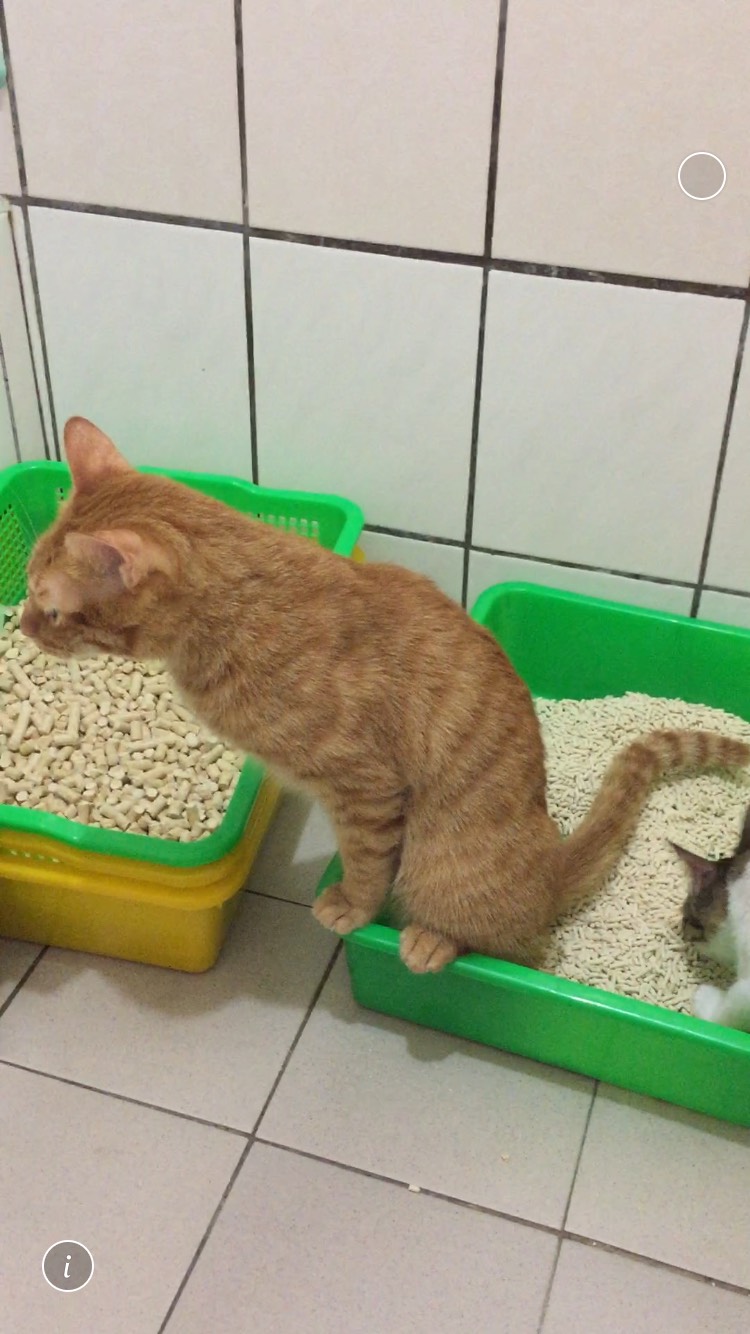 一天下來,累積不少尿量跟便便,相對旁邊的崩解式木屑砂,整個是失寵了QQ