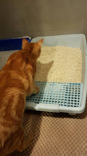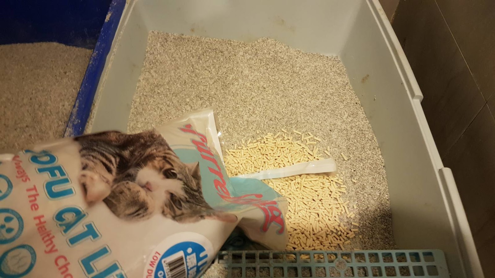 目前是混砂所以還不能沖馬桶,之後全部是倍淨豆腐貓砂就可以沖馬桶了!