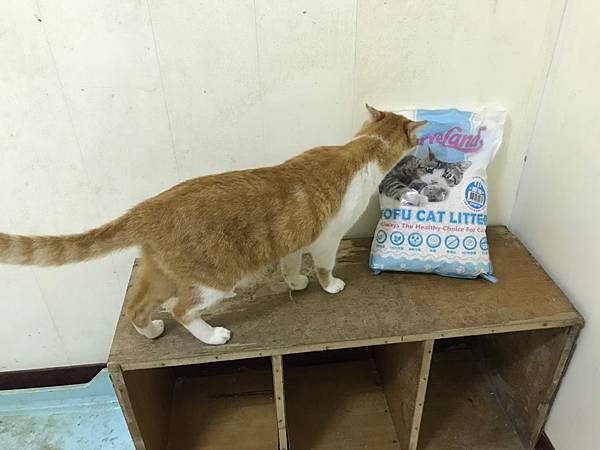 阿布搶先對豆腐貓砂表現出極大興趣!哈哈~~~