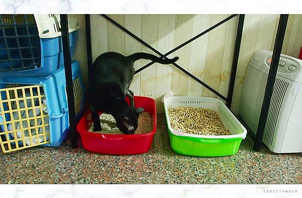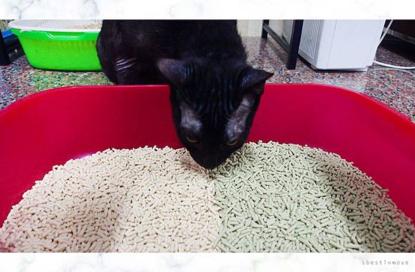 等大部分的貓砂都換為豆腐砂,他們如廁的狀況也跟平常一樣就換砂成功啦!