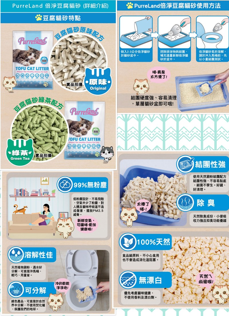 PurreLand 倍淨豆腐貓砂它是食品等級原料及配方,我們家的貓若不小心舔到也沒關係