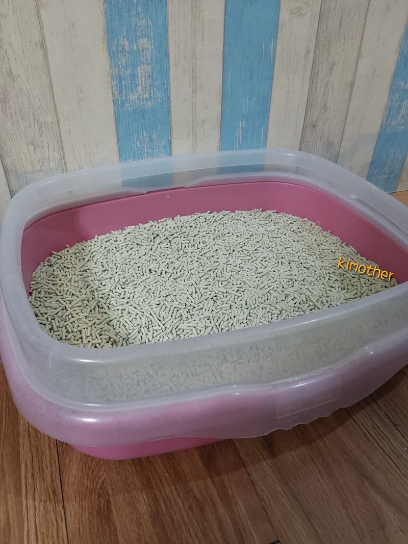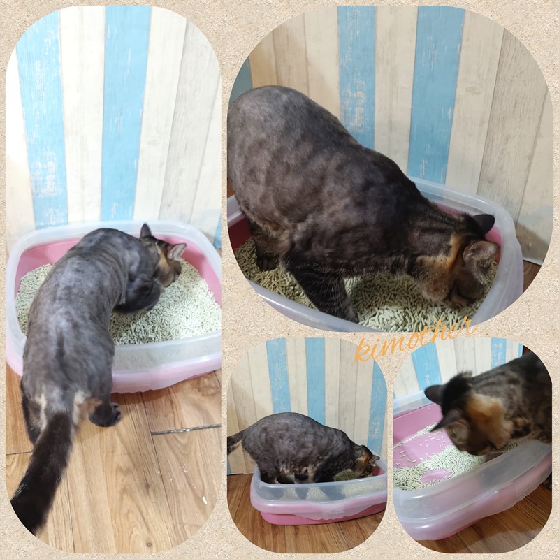 掉出來的豆腐貓砂,一顆一顆的也很好清掃 也不用擔心粉塵,挖便便時也不用戴口罩