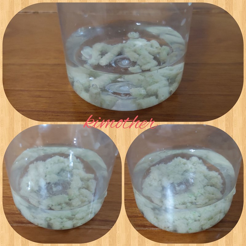 靜靜的泡到水裡約1分鐘就會慢慢的膨脹