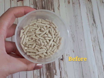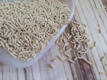 一打開來,是長得很像兔子飼料感覺的形狀,有別於傳統貓砂給我們會粉粉沙沙的印象!