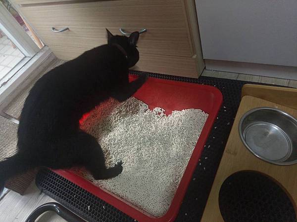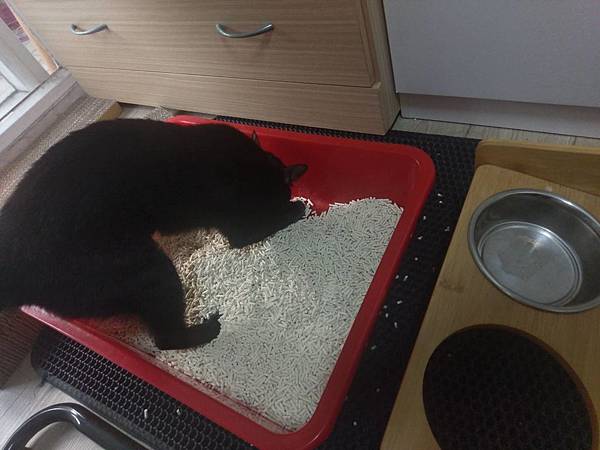 原味的貓砂是放房間的,綠茶味的放客廳,一個星期下來發現花露露喜歡原味的,綠茶的她只有一開始聞過之後都沒用過了