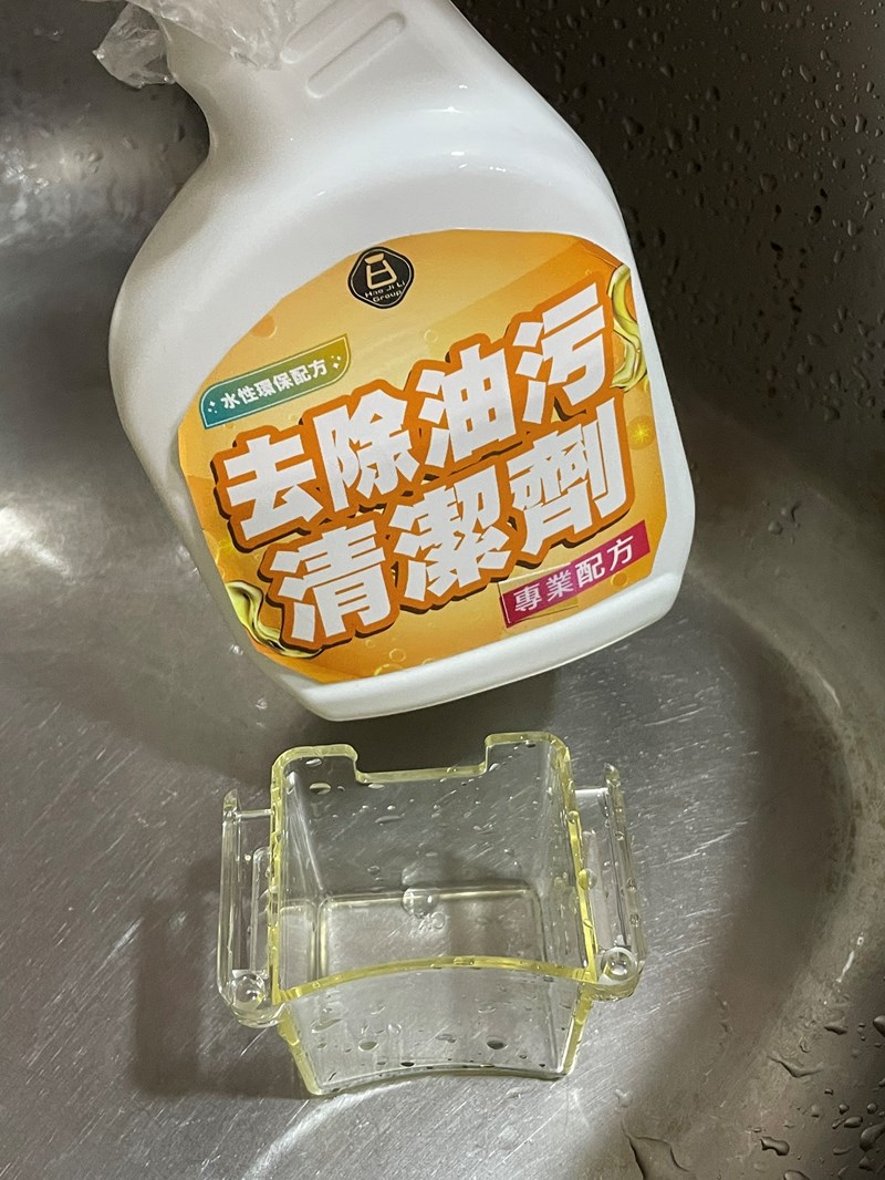 我拿來實測抽油煙機的集油盒噴上後等個3分鐘左右再擦拭過,可以看到變得乾乾淨淨真的沒有滑膩感了!