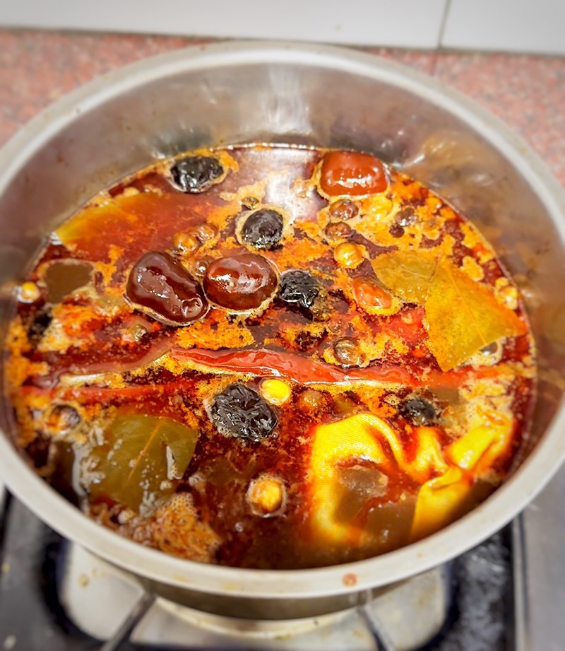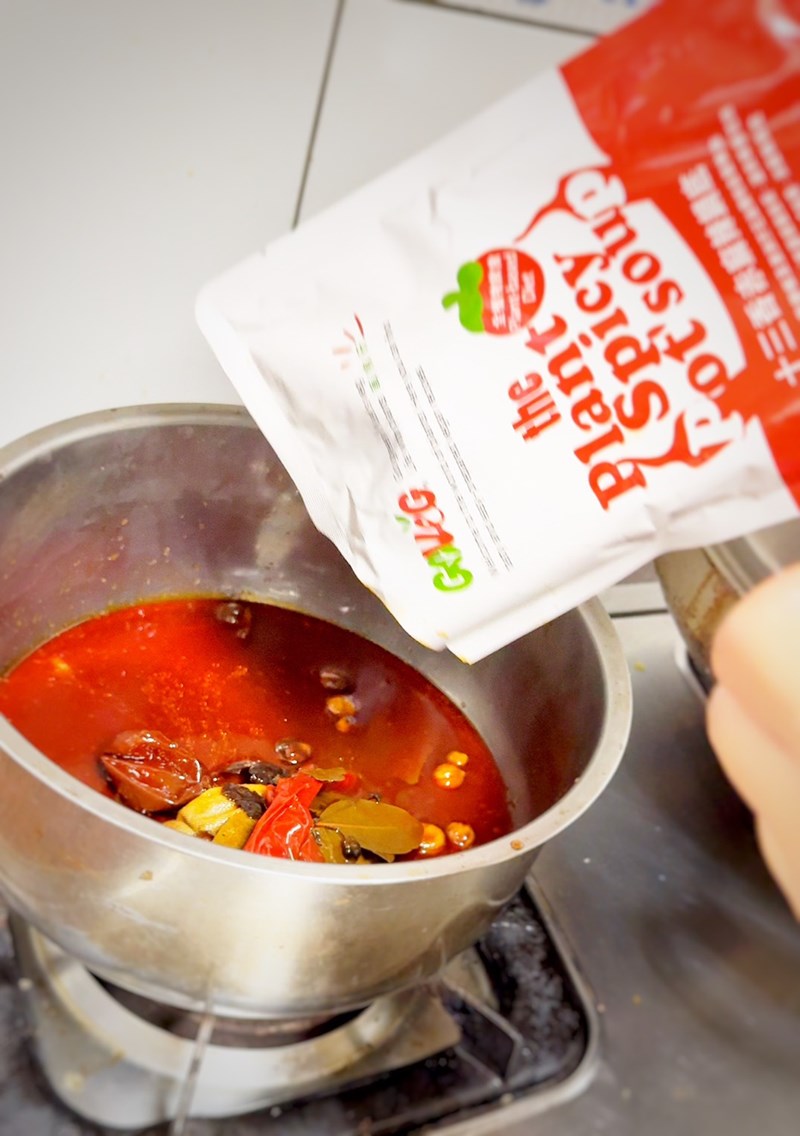 草食研十三香赤麻辣鍋底包的湯底你可以喝湯的麻辣鍋