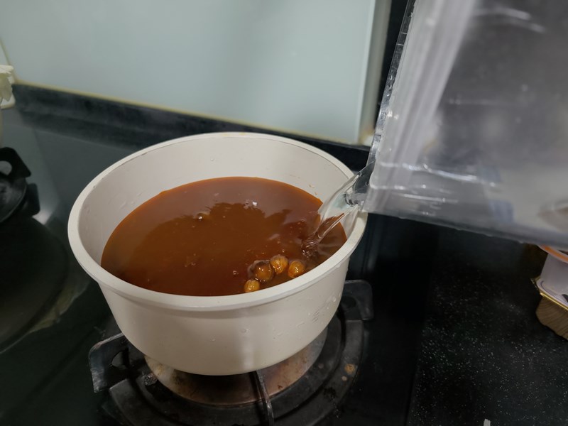 一包草食研十三香赤麻辣鍋底包丟下去,加入2000cc的水,