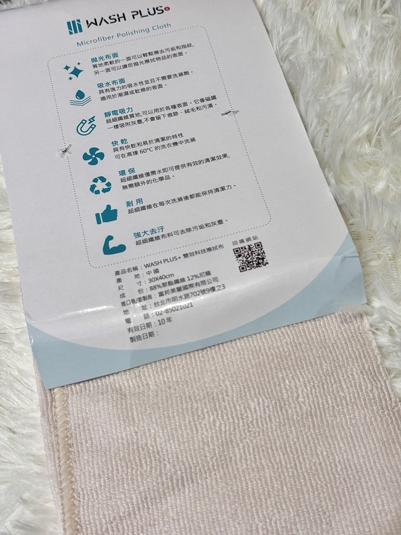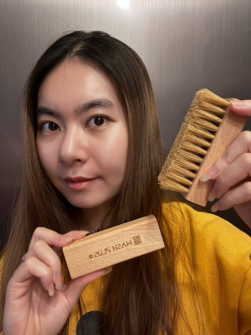 WASH PLUS 在說明中有提醒,這類布料選用柔軟的刷具,並且保持單一方向刷洗。