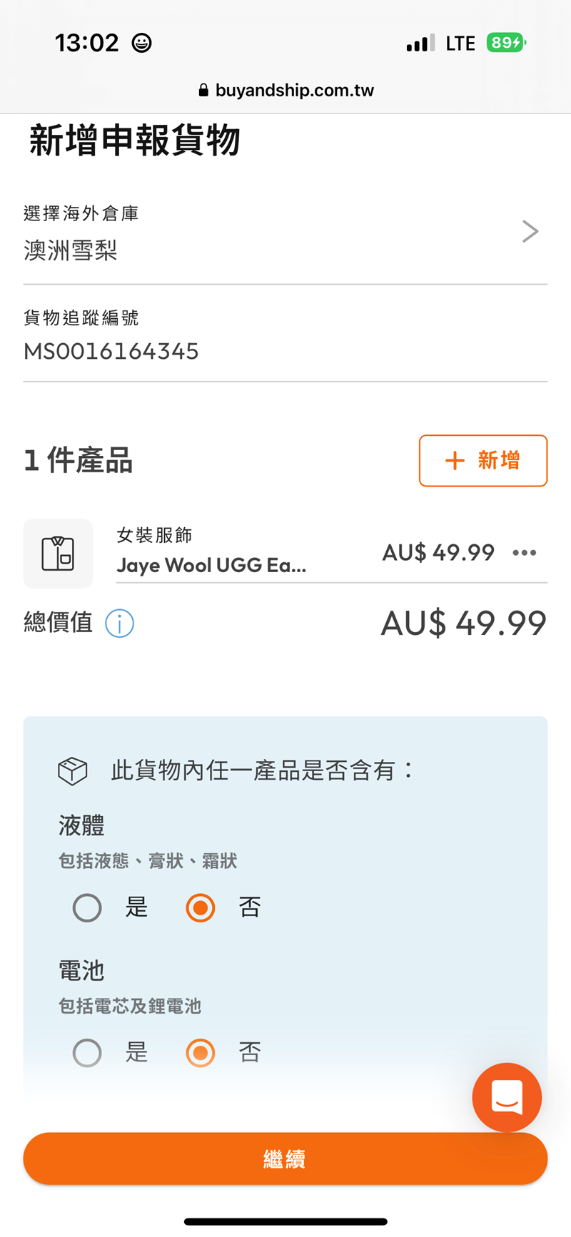 這次是使用buy&ship 這個網站 直接在澳洲的UGG官網下單