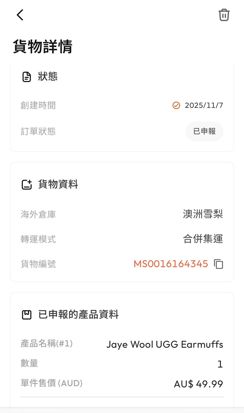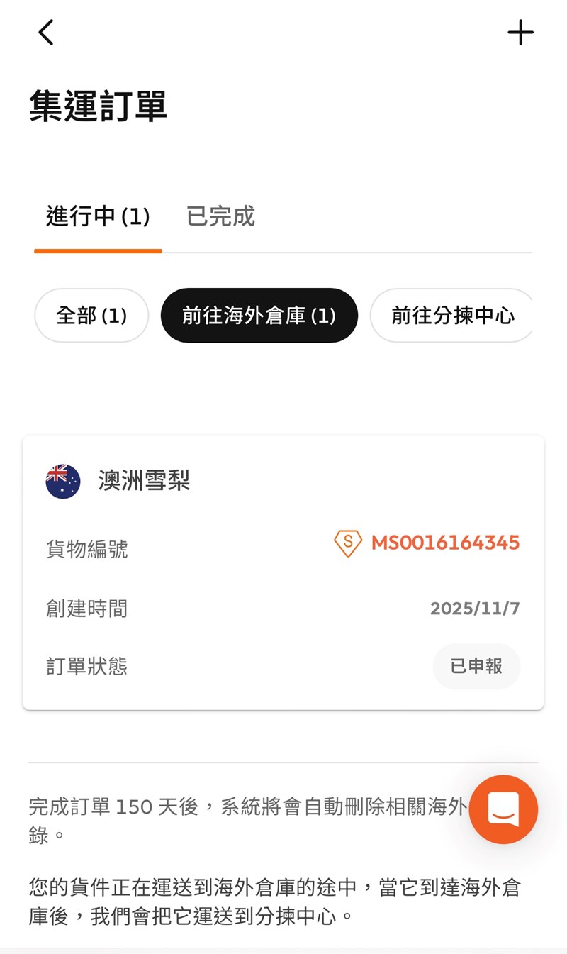 接著當地國家的倉庫地址在收到貨件後 我們只要點選合併打包 再支付集運的運費 包裹就會運回台灣囉👐