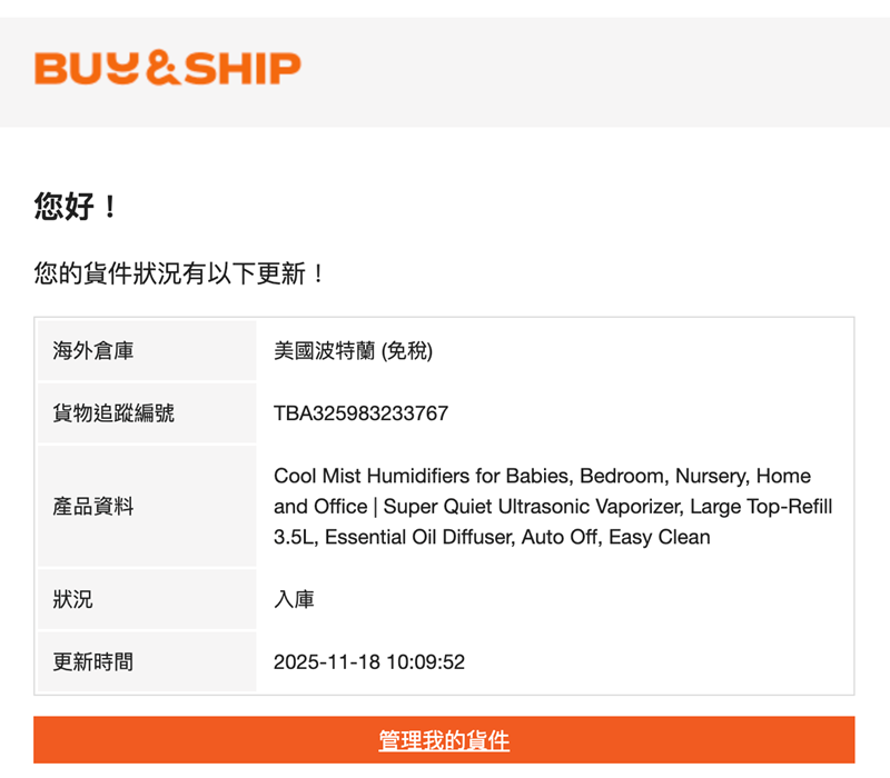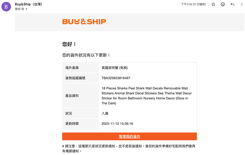 Step 2|等 Amazon 出貨&拿到追蹤號(你的包裹就是這裡開始有 TBA)