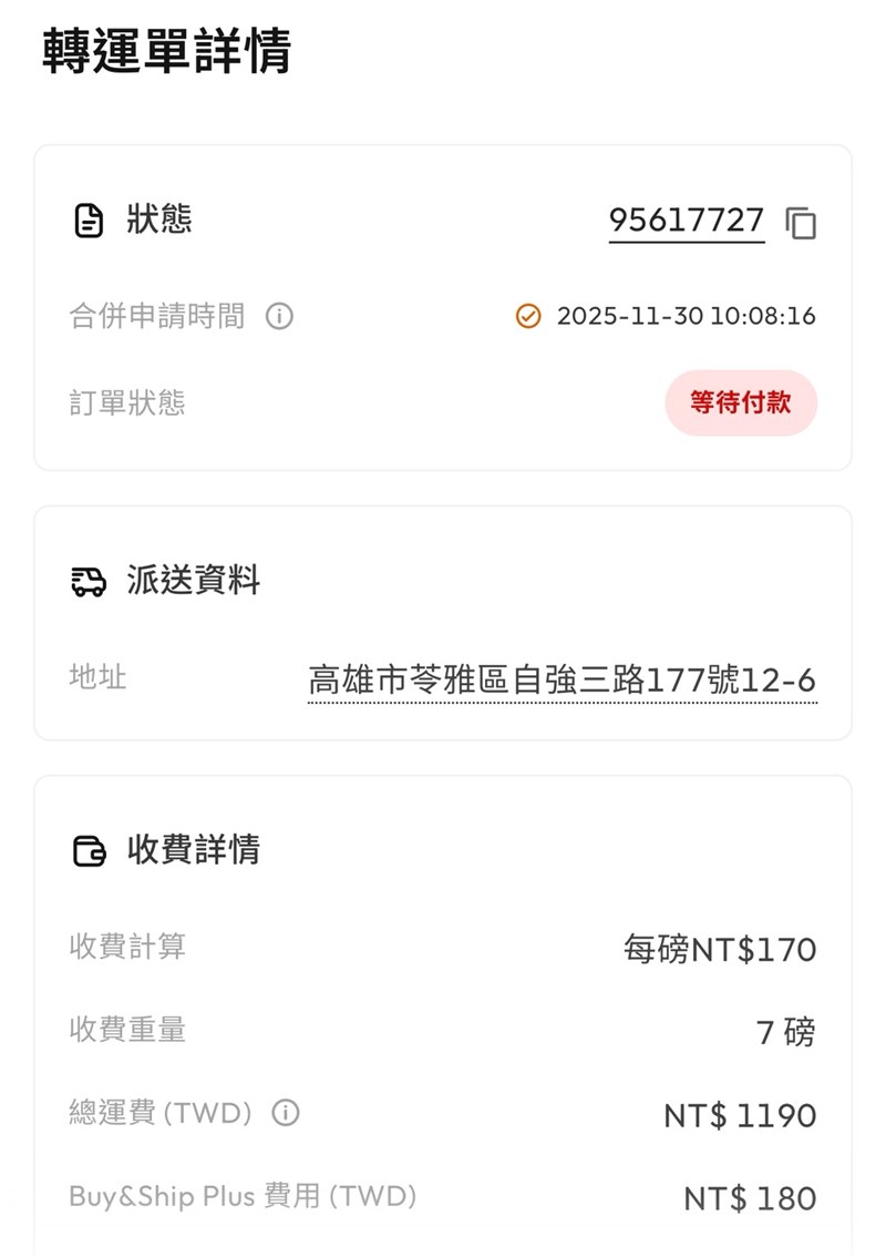 Step 4|合併包裹(我的合併單:95617727)