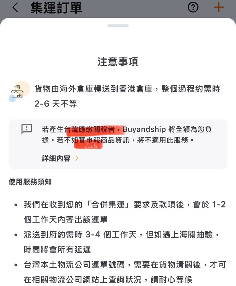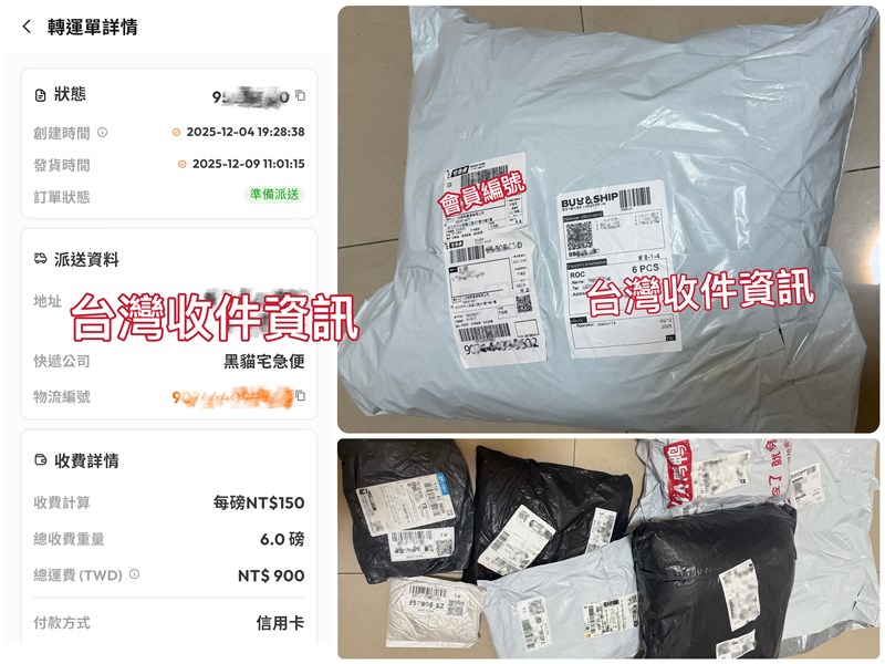 系統會轉發到香港自由港讓我進行合併,打包集貨才會有我台灣收件資訊,最後才轉運回台灣。
