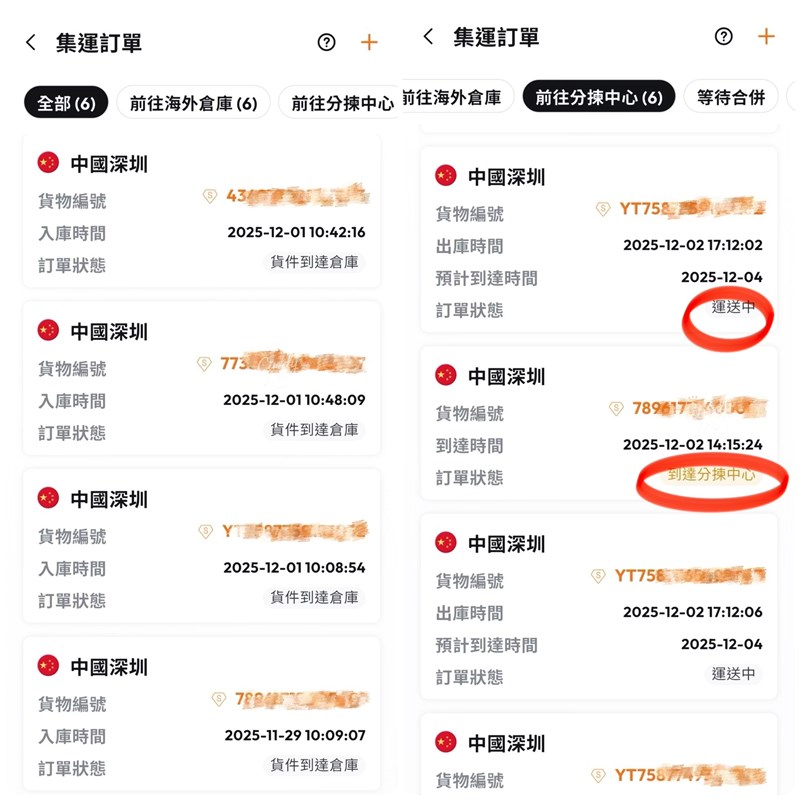 接著送往分揀中心並轉運至香港,直到畫面出現「等待合併」才需要進行合併與付款。