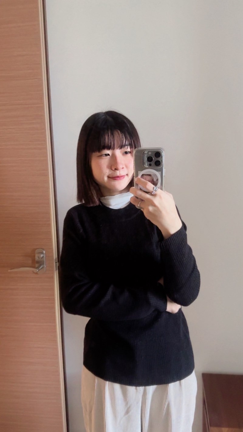最近天氣轉涼,衣櫃裡最常被我拿出來的,就是這件 純羊毛長袖修身上衣。