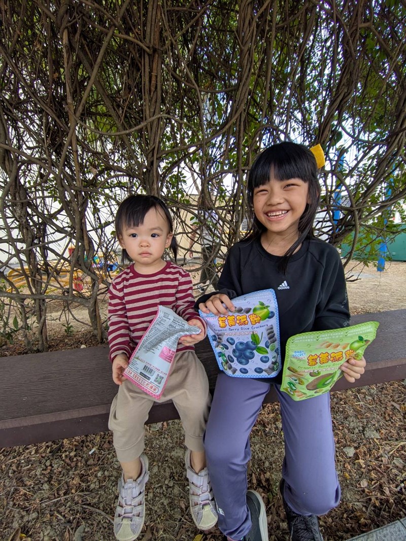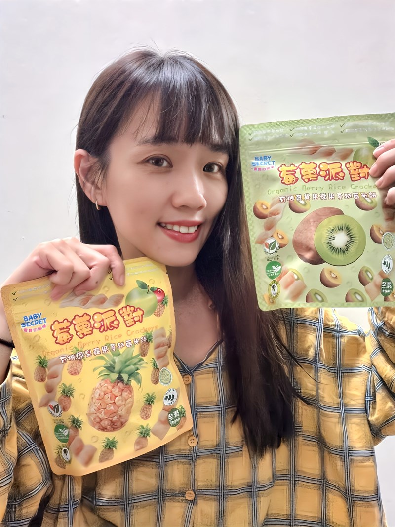 吃的是100%天然有機蔬果製成的米餅,全素、無麩質,連過敏原都在製程中全面避開。