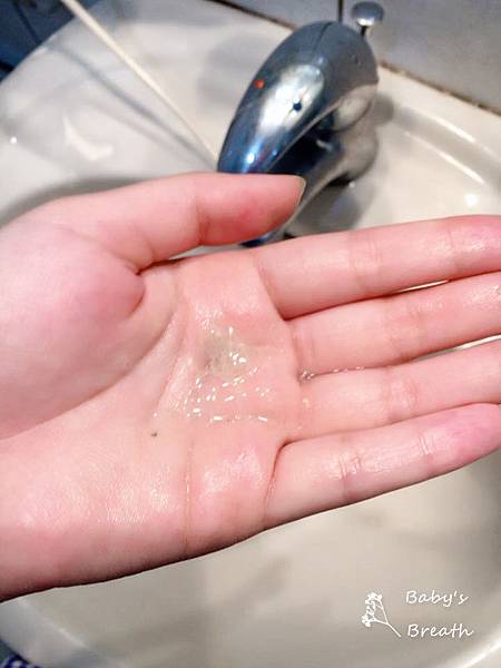 但臉當然不是這樣就乾淨啦,這個卸洗膠,加上清水後會有泡泡產生,不過因為胺基酸成分的洗面乳起泡力不是很強,如果是喜歡濃密泡泡的人一開始用胺基酸洗面乳可能會不習慣他那稀疏大粒的泡泡,不過真的不會因為泡沫較少影響其清潔性,只是適應性的問題而已。