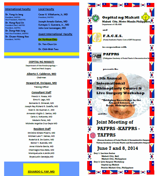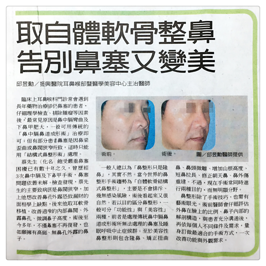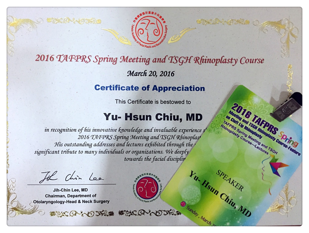 學歷: 臺大醫學院臨床醫學研究所 醫學碩士 臺大醫及工學院 醫學工程研究所博士班 現職 : 振興醫院 醫學美容中心 及耳鼻喉部主治醫師 台大醫院 耳鼻喉部教學主治醫師 及 教育部部定講師 經歷:中國醫藥大學附設醫院臺北分院 耳鼻喉科主任 台北市立婦幼醫院 耳鼻喉科主任 新光醫院 耳鼻喉科主治醫師 國外進修 : 美國南加大 House耳科中心研究醫師 西澳大學醫學中心 微創鼻及鼻竇手術進修 美國芝加哥大學醫學中心 鼻整形手術研究 韓國心美眼 顏面整形中心進修
