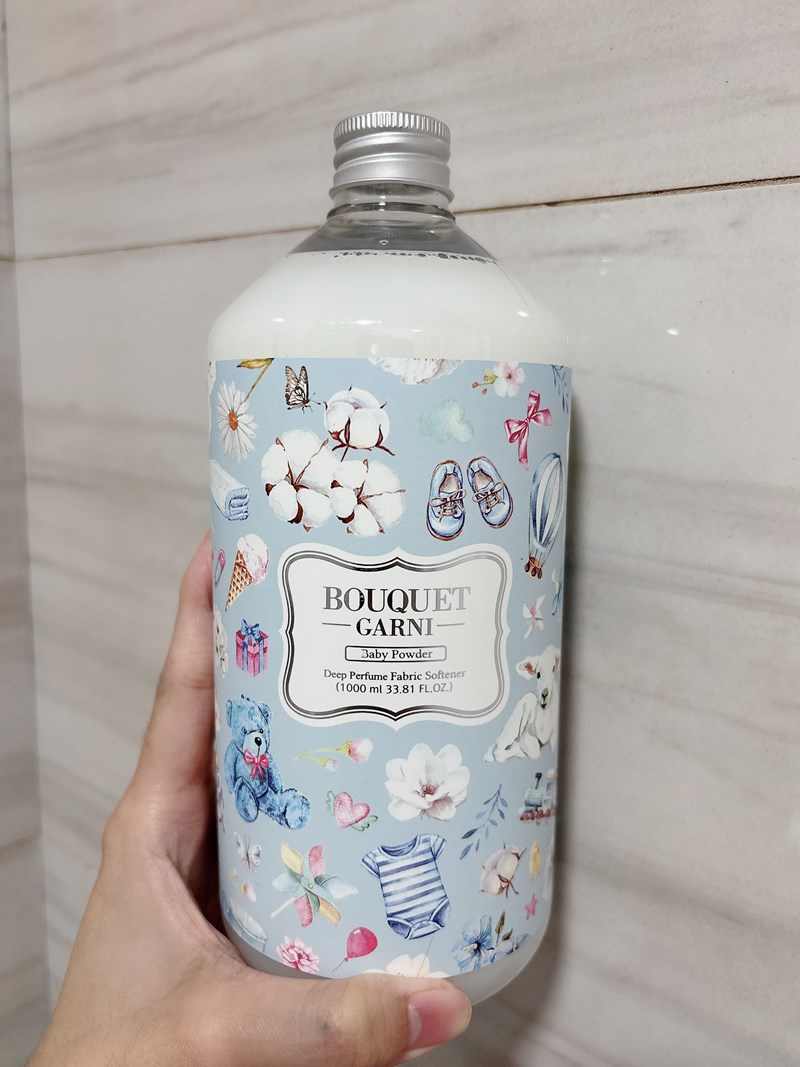 這瓶 BOUQUET GARNI Baby Powder 深層香氛衣物柔軟精, 光是外包裝就讓人覺得療癒。 藍色的底色搭配棉花、冰淇淋、禮物盒、 泰迪熊、嬰兒鞋等插畫元素,整體風格清新又帶點童趣, 好像把人帶回到...