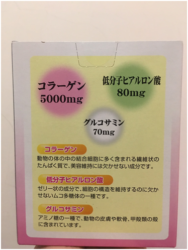 內含三大成分:魚膠原蛋白、玻尿酸、葡萄糖胺