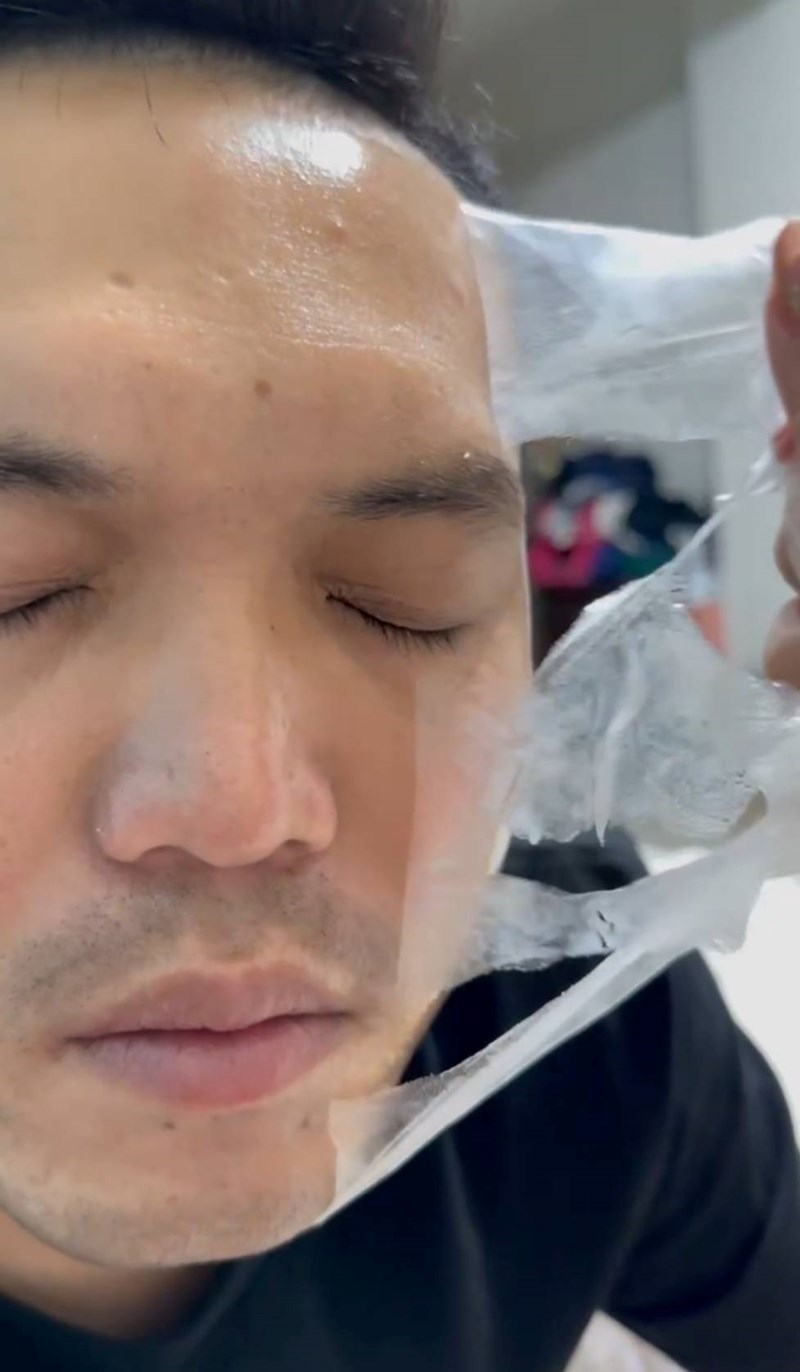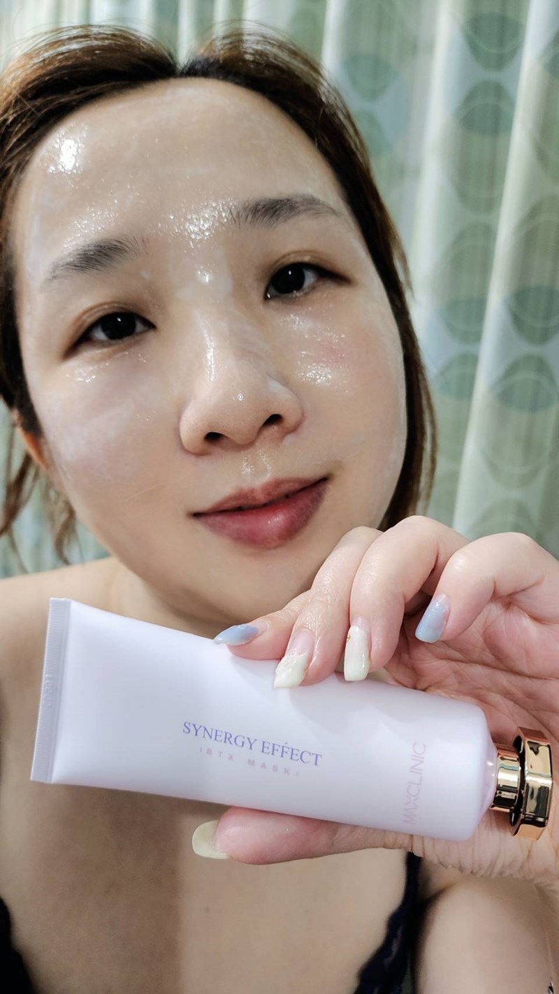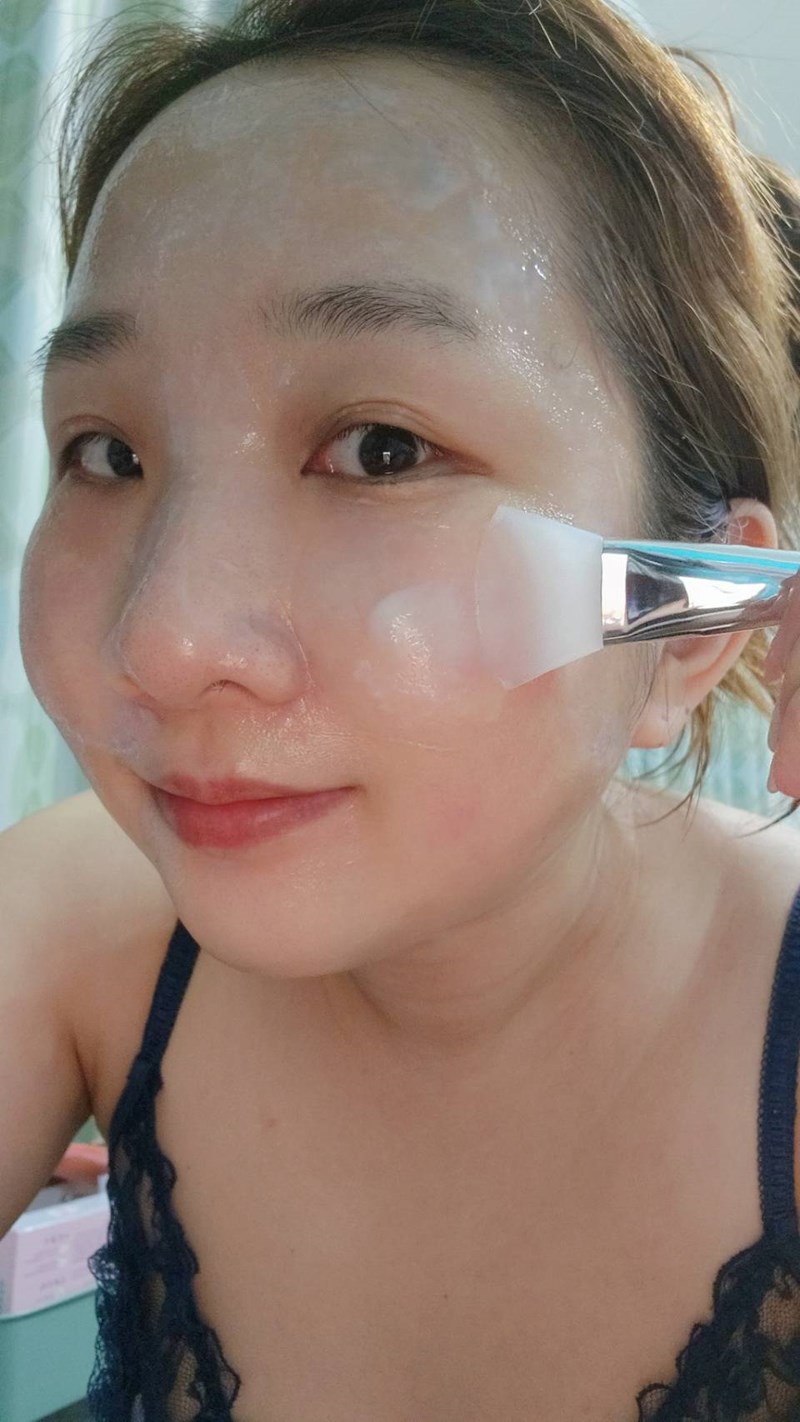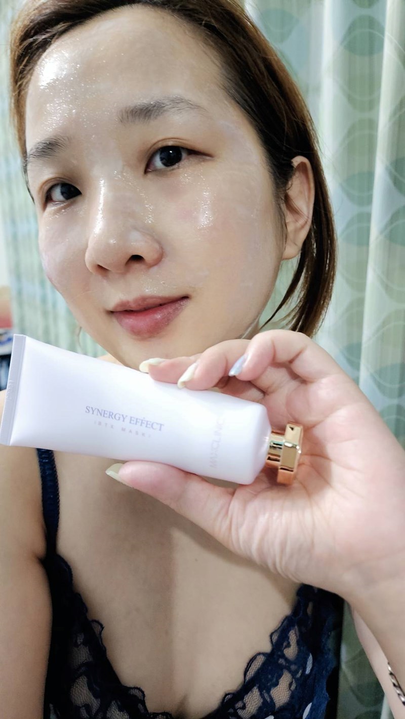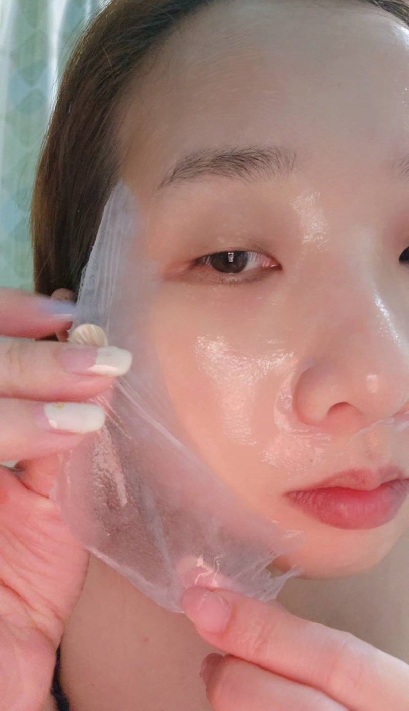 面膜它透明的狀態也可看到肌膚很有光澤,好像自帶濾鏡一樣,