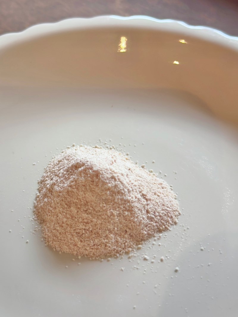 粉末細緻,入口時有淡淡的百香果汁微酸感,