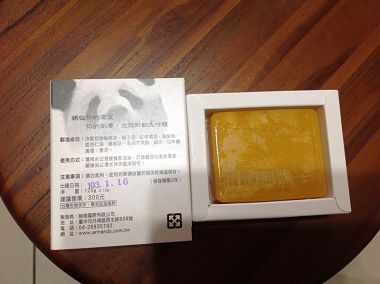 打開外盒後 可以看到ARM&S 清酒無限皂 是黃色的皂 一打開就可以聞到植物精油的味道 還蠻香 聞得出是天然植物的味道~