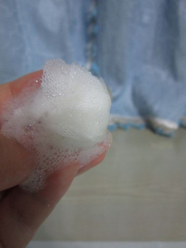 實際操作時,沾水後不必搓揉太多下就有泡泡出現 且搭配起泡巾(!?)之類的東西,可以將泡沫弄出更多