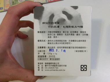 包裝上印著一隻熊貓,未免太可愛了芭! 背面有製造成分與使用方法及注意事項