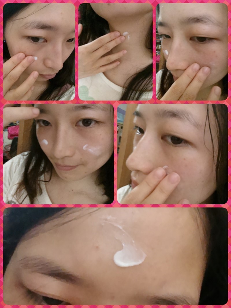 左右臉各取一些抹上,然後推開(  ̄ 3 ̄)y▂ξ 有些部分我直接用輕拍的唷 而且覺得用輕拍的方式還蠻順手,也不會拉扯到肌膚 更重要的是:感覺不泛油光♥