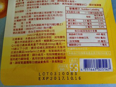 有效日期 內 容 量:550毫克/錠;30錠/包 注意事項:本產品由天然原料萃取,如有變色,屬自然現象請安心食用。輔酵素Coenzyme