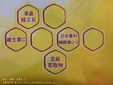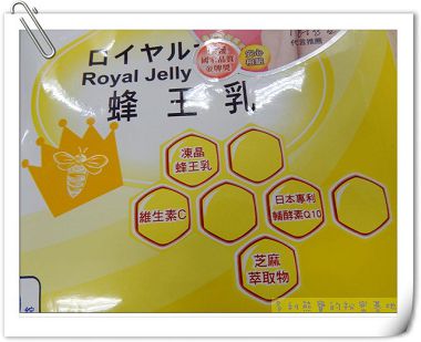 其實我之前從來沒吃過蜂王乳 所以也不知道一般那味道如何 只從親朋好友那聽說是用喝的,味道很嗆很刺鼻 所以覺得這些先進技術真的很厲害呀! 能保留蜂王乳的營養成分而把它通通鎖進糖衣錠裡 只要吞個幾顆就能輕鬆保養~~~