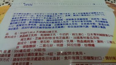 從包裝上也有著Angel LaLa的小貼心, 除了有 還有密封壓條, 這樣可以確保裡面珍貴的天使娜拉蜂王乳錠不會受潮變質, 或被小強、螞蟻們偷渡進去一起美容養顏一番!