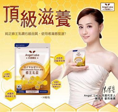 Angel LaLa天使娜拉蜂王乳錠 黃色包裝 非常顯眼~ 代言人是美麗女星陳德容 更加有說服力