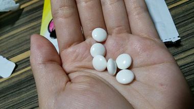 倒出來給大家看看它的本尊吧~~將將將~ 白色的糖衣錠,就像珍珠光一般低調華麗! 我打從心底希望吃完可以讓我隨時由內而外散發迷人光才好. 使用量是2~4粒,多食無用喔~我剛開始使用都是每天2粒這樣. 純白色像糖果一樣的顆粒,在我手掌心滾動~再不放進嘴巴裡就要溶化了啦.