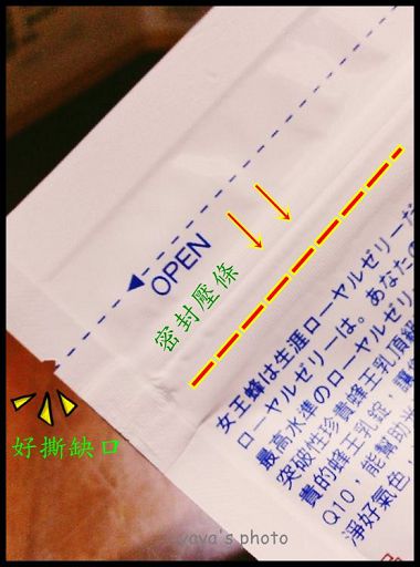 好話不多了,對準上面的封口,直接撕開~發現它超貼心的設計成夾鏈袋. 讓每一顆珍貴的蜂王乳錠,都不會輕易變質~又方便攜帶外出真是超貼心的說.