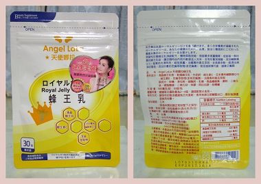 可愛的黃色包裝,用夾鏈袋式的設計!真的超級貼心~走到哪都可以隨時隨地補充> < 而且好保存不用特地冰冰箱~還很貼心的清楚註明有效日期~ 天使娜拉家的蜂王乳有別於市售的罐裝不好攜帶或是不好保存~ 很適合現代忙碌的女性 一包裏有30顆,補充方式就是一天吃四顆啦~搭配溫開水 順口又好吞((重點完全沒有蜂王乳刻板印象的刺鼻味~ 天使娜拉蜂王乳詳細介紹: