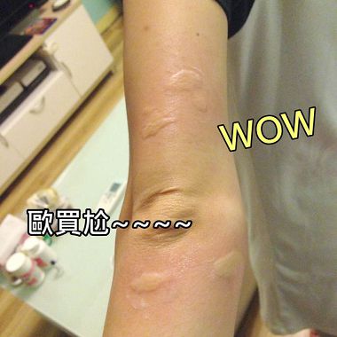 首先有圖有真相喔 不過照片好像不太明顯 看起來好像沒什麼 但是其實我已經被臭蚊子叮了6個包包之多了 真的很慘= =" 而且還是自己家