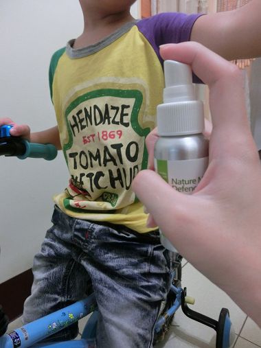 北部天氣還涼爽時,我會幫他們穿上長袖長褲 但還是有露出的肌膚阿 還是得雙手在身上揮來揮去~或者~"啪"的一聲打蚊子! 這時候防蚊液真的是幫了個大忙