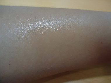 防蚊液本身是水狀透明的 所以很好推開塗抹 塗完之後就像下面有薄薄一層覆蓋在肌膚上 幾乎看不出來 很快就吸收不怕黏膩 而且添加蘆薈萃取液喔