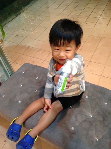 兒子在我噴完後覺得味道還不錯~所以手就拿起來聞了.... 它的味道不刺鼻,還不錯聞。