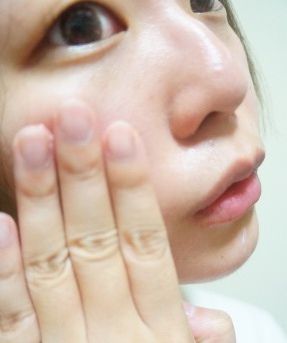 白色清爽的乳霜狀質地 透過指腹的溫度 隨即融化 能很迅速地能被皮膚吸收 現在的肌膚呈現保水的狀態 觸感柔滑 完全不會有黏膩 油膩的厚重感