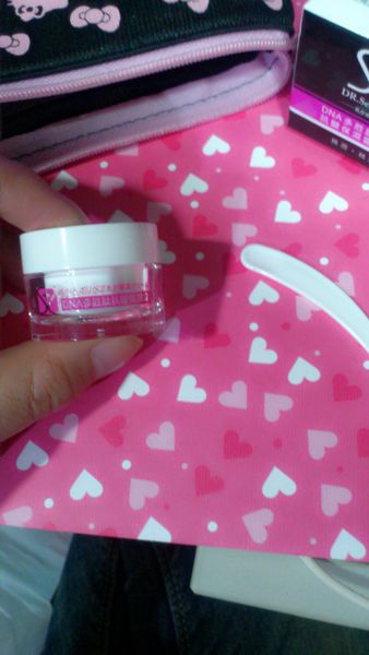 這次我試用的產品是:「DNA多胜肽抗皺保濕霜8%」。 真開心!! 有兩罐5ML的試用品呢!!! 收到便利袋時,摸到有兩罐超開心的!!!超NICE的!!!