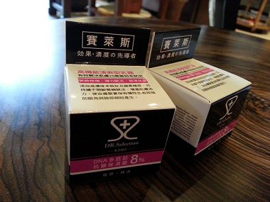 首先來了解一下DR.Selection賽萊斯DNA多胜肽抗皺保濕霜8%的成分與功效: DR.Selection賽萊斯DNA多胜肽抗皺保濕霜8%是由DR.Selection台灣及日本實驗室共同技術開發的護膚產品,它採用國際大廠保養成份及獨家BIO-3D Atom技術,能有效改善細紋、粗糙、暗沉、膚色不均、毛孔粗大、皺紋、缺乏彈性等肌膚老化問題。產品添加高濃度多胜肽及蘋果精萃,可持續不間斷持續緊緻賦活,改善細紋並修復肌膚,並有效預防眼角與臉部細紋產生,並增進肌膚活力,使皮膚保緊實有彈性。(感覺一瓶就能解決女性肌膚所有問題~) 光用看解說都知道它非常厲害!而且它是由台灣及日本共同開發的優質產品(又見台灣之光!)
