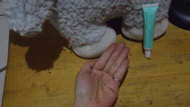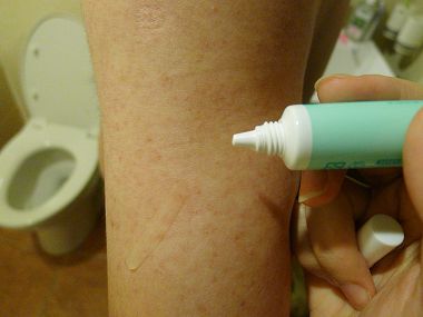 在痘痘的地方輕輕地塗上薄薄一層