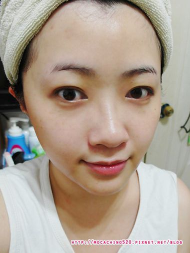 也比沒敷之前亮白了些呢! 而且臉似乎好像沒那麼垂了耶! 有點被拉提緊緻的感覺呢!